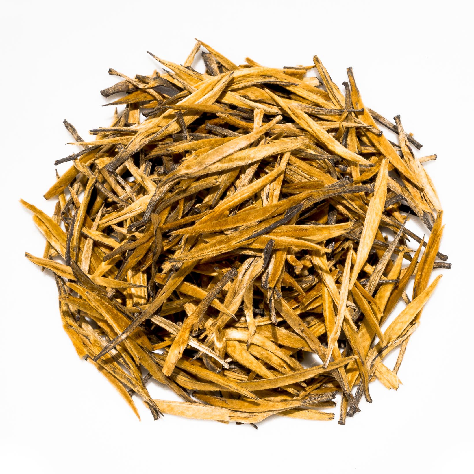 Dian Hong Golden Needle هو شاي أسود عالي الجودة ورائع من مقاطعة فنغ تشينغ بمحافظة لينكانج بمقاطعة يوننان. يأخذ اسمه من مظهر الأوراق التي تتكون فقط من براعم كبيرة تشبه الإبر الذهبية. لها شخصية Dian Hong الكلاسيكية ، أو Yunnan Red ، والتي عادة ما تكون حلوة ومذاقها وشوكولاتة.