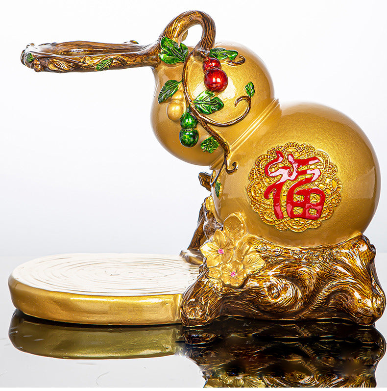 The gourd is known in China as a symbol of nobility and elegance, representing auspiciousness, peace, and friendship. Elegant blue main color with gold accents. Traditional color glaze technology makes it very textured. A great option even as a craft or shelf!