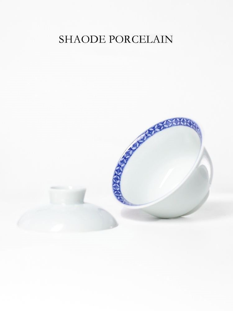 Shouzang kiln blue and white copper coin cover bowl Jingdezhen Chinese retro tea set tea bowl hand-painted single