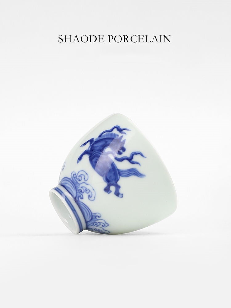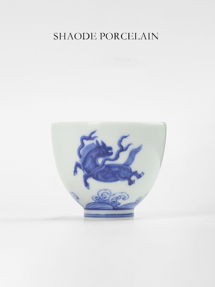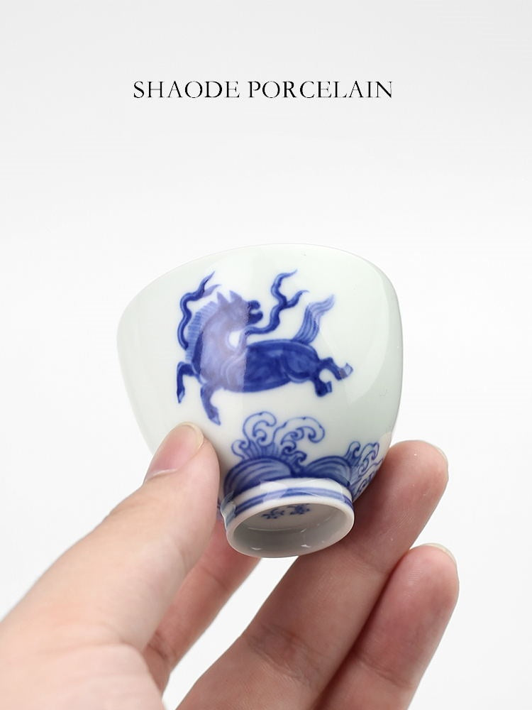 Shouzang kiln blue and white Pegasus master cup single cup Jingdezhen Chinese retro tea tea cup hand hand sample tea cup
