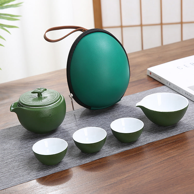 تتضمن مجموعة شاي السفر الخزفية هذه: