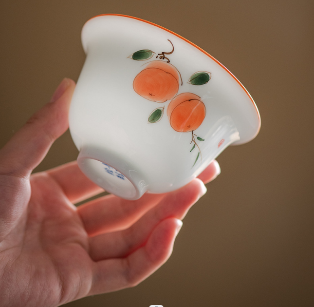 ● Craft style - hand-painted persimmon (a symbol of lucky); the pattern of the cup is purely handpainted.