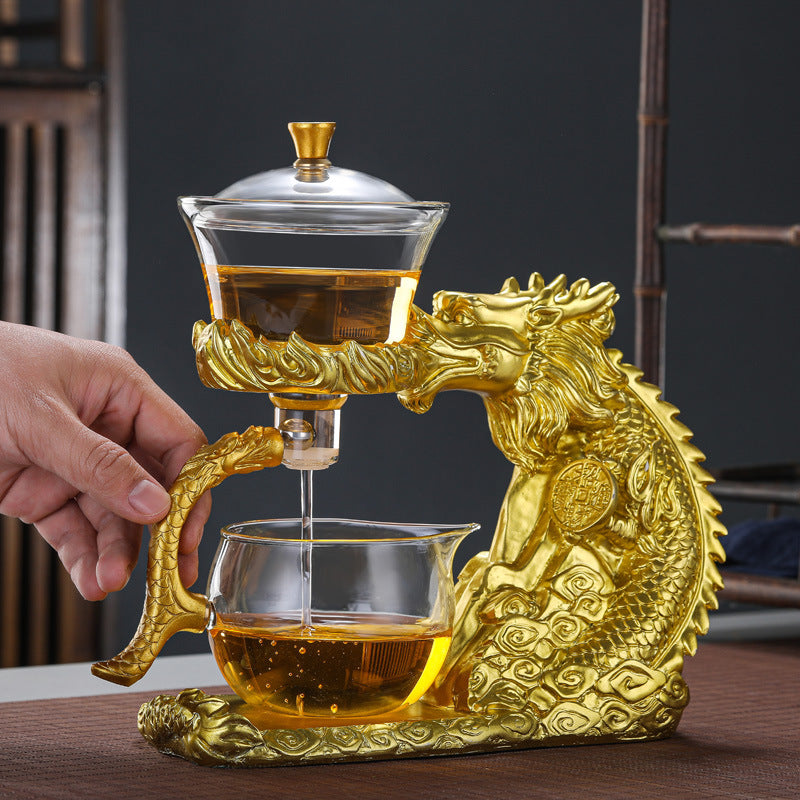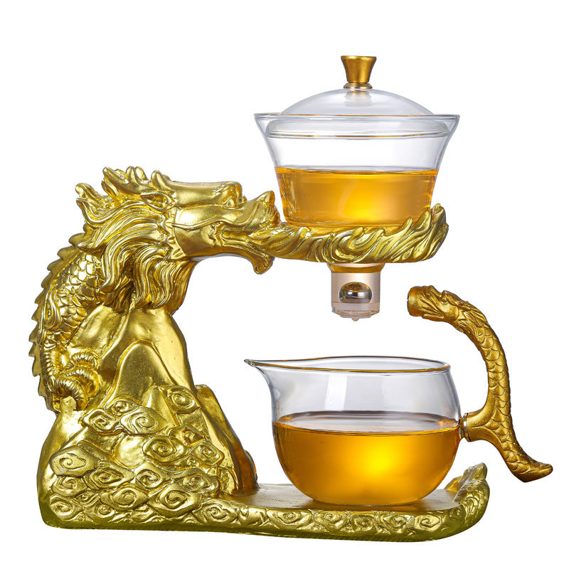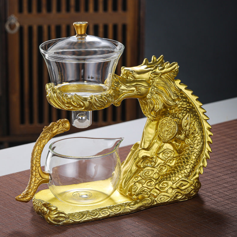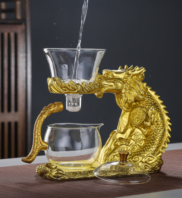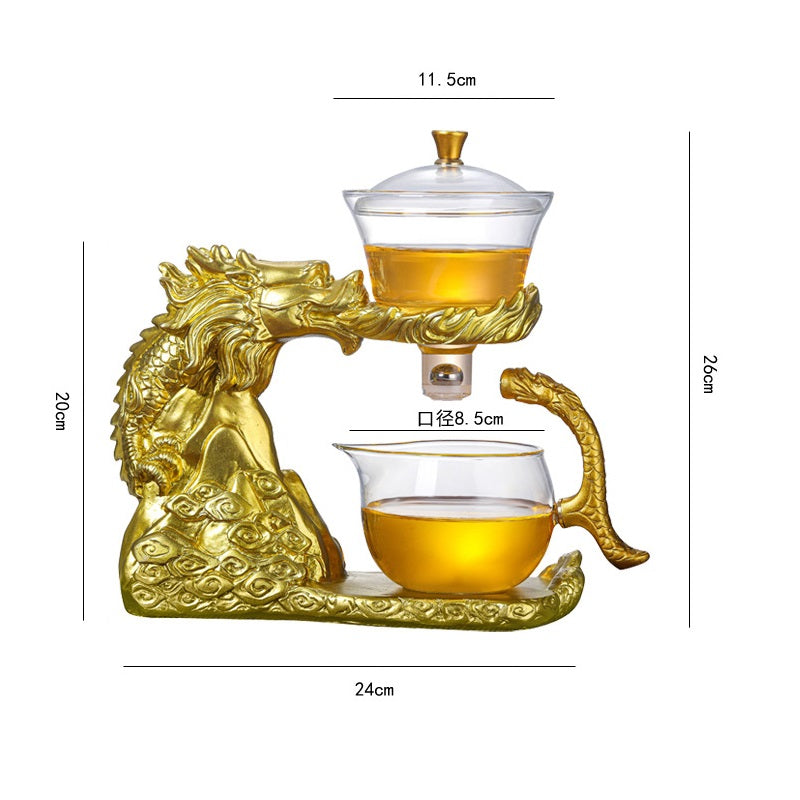 طقم شاي زجاجي من RORA Lazy Kungfu طقم شاي مغناطيسي لتحويل المياه غطاء دوار وعاء شبه أوتوماتيكي من الزجاج والكريستال بدلة إبريق شاي