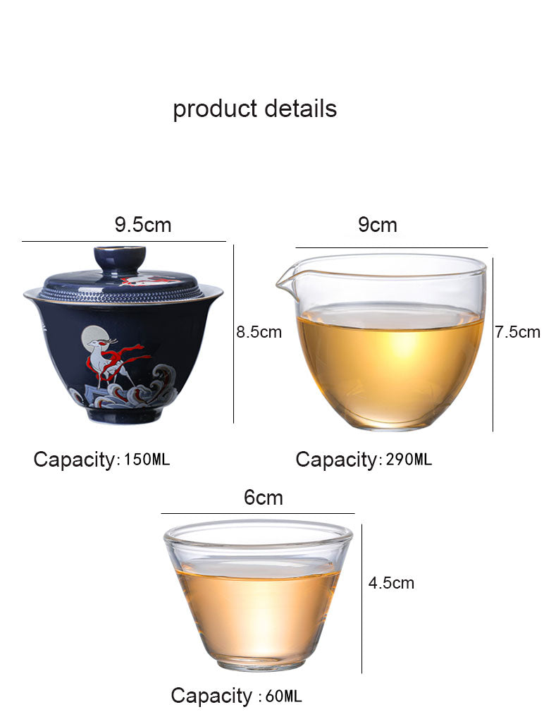 - 【 What You Get? 】Glass Teapot * 1, Porcelain Tea Brewer *1, Glass Tea cup * 3, Wipe cloth* 1, Portable travel bag x 1