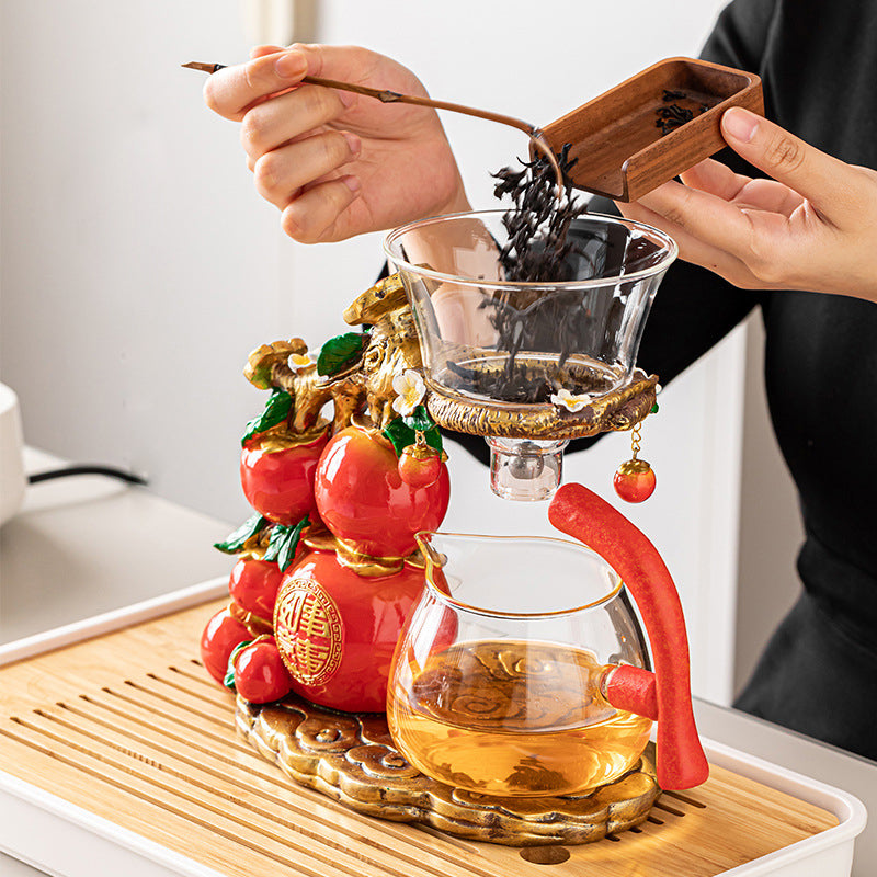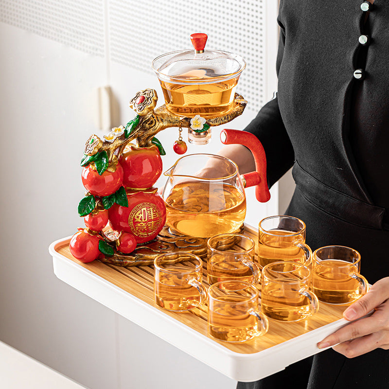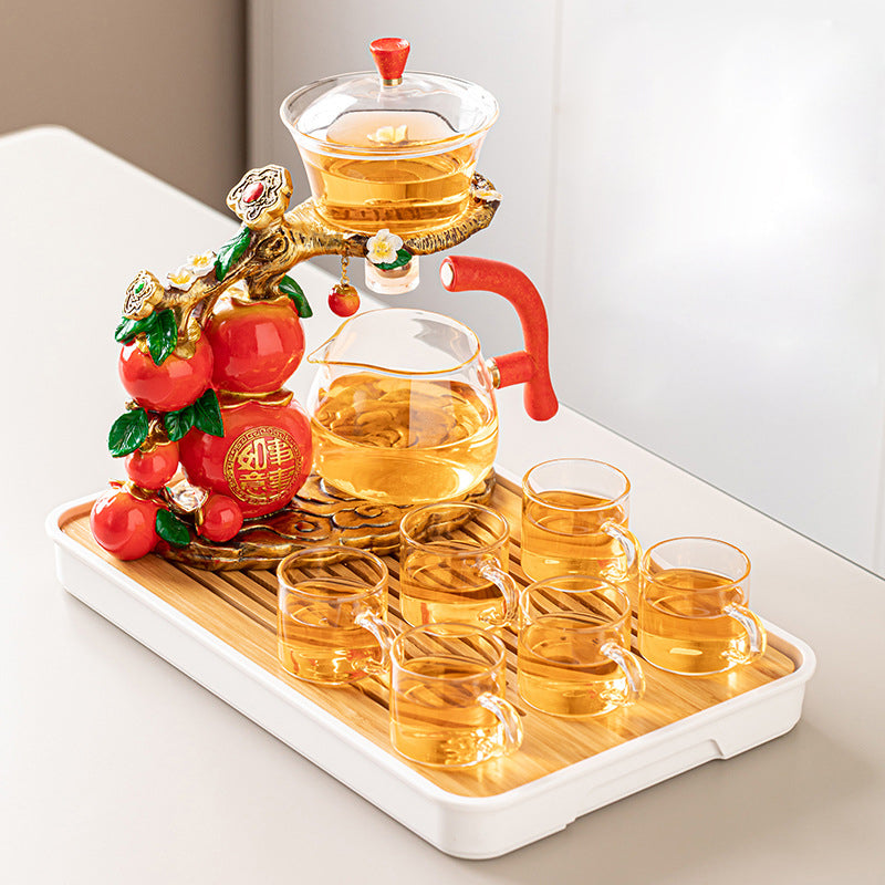 Lucky Ruyi Automatic Magnetic Lazy Kung Fu Glass Teapot Set