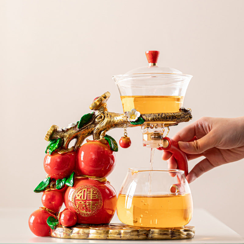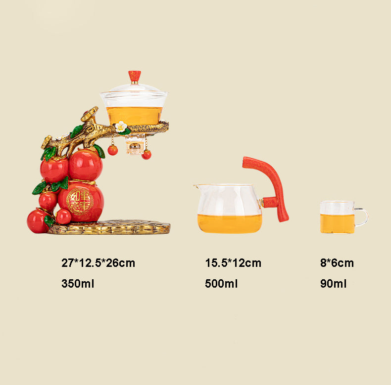 ʚɞ【Special Design】The base of the glass teapot is in the shape of a persimmon Ruyi, with traditional Chinese gourds and persimmons as a match, and the red color represents the joy of a good harvest. It means that everything is as it should be, that good things are always there.