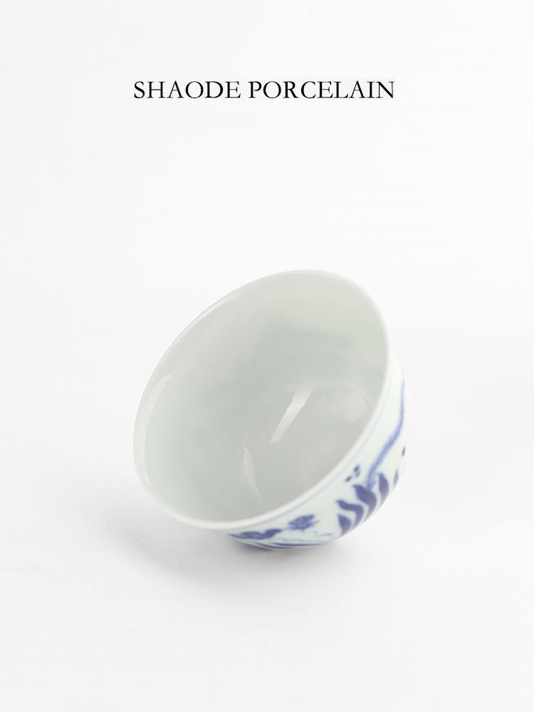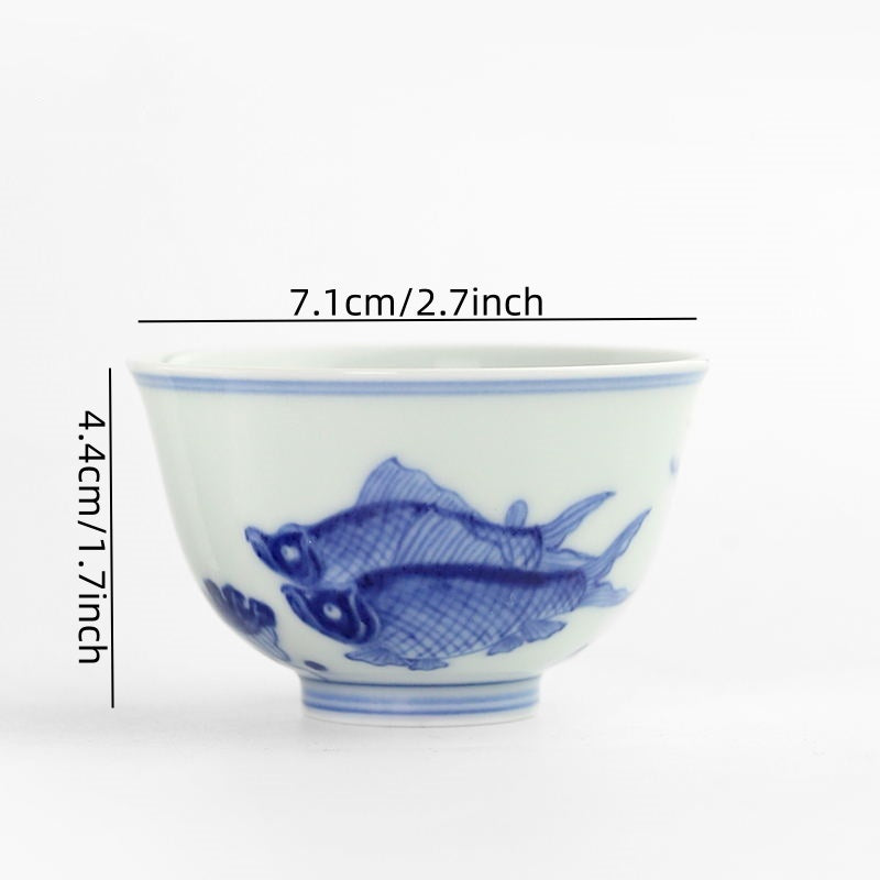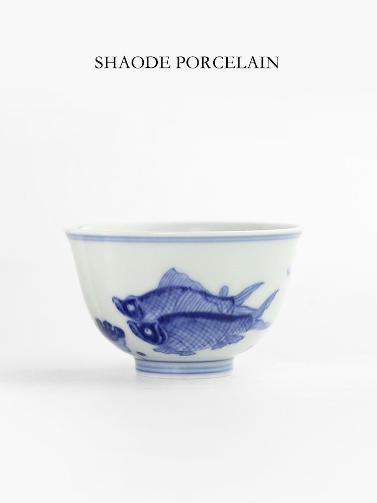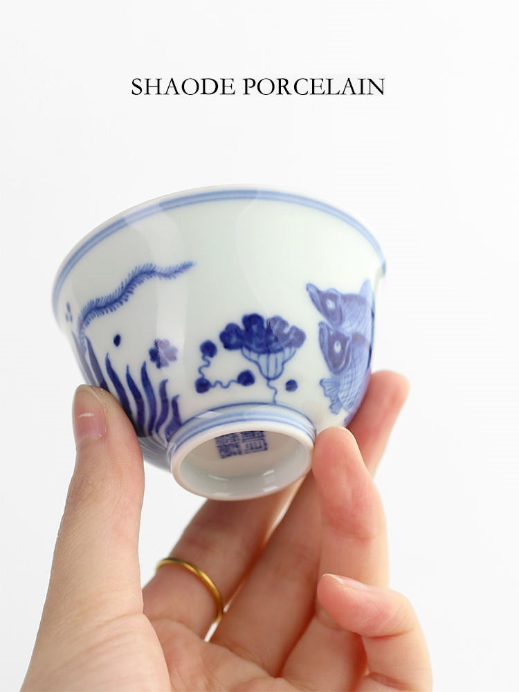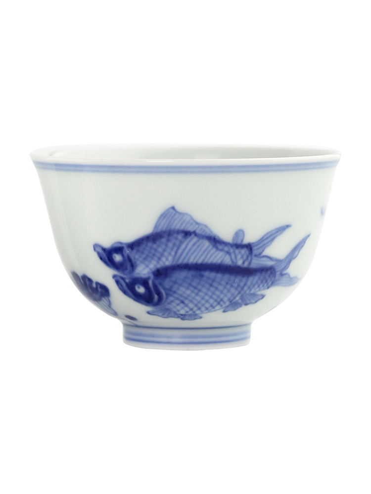 Shouzang kiln blue and white fish algae pattern master cup single cup Jingdezhen Chinese pure hand-painted sample tea cup