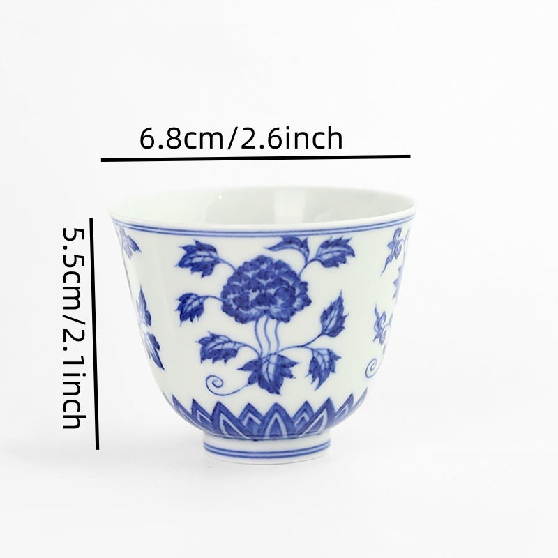 🌼 Four seasons flower patterns: The blue and white patterns on the master cup depict different flowers in spring, summer, autumn and winter, such as plum blossom in spring, lotus in summer, chrysanthemum in autumn and plum, orchid, bamboo and chrysanthemum in winter, which are vivid, delicate and lifelike.