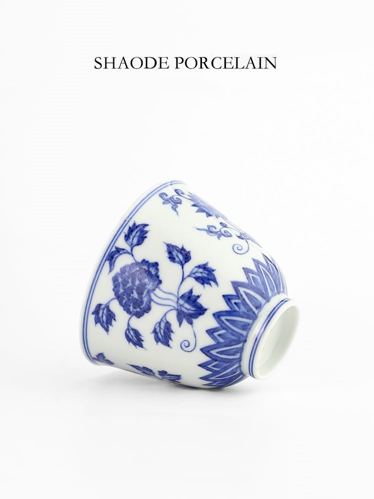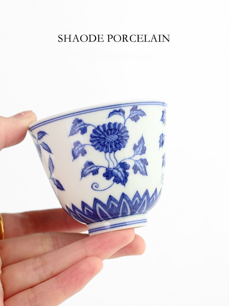 Shouzang kiln blue and white four seasons flower pattern master cup single cup Jingdezhen Chinese tea cup pure hand-painted sample tea cup