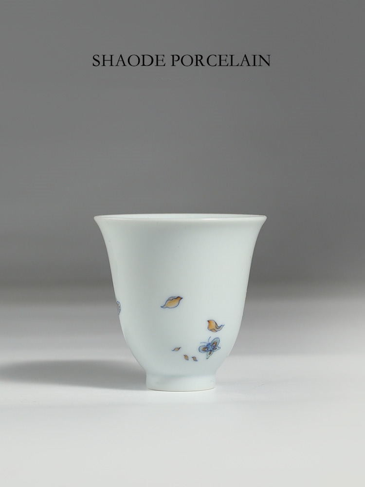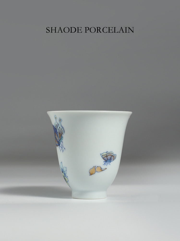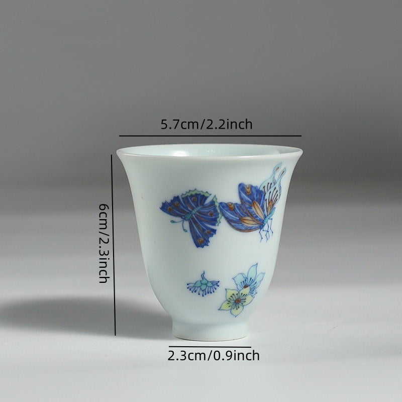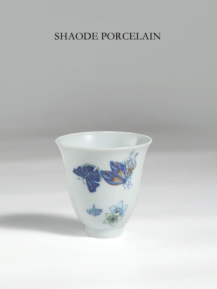 Four tone too blue and white bucket color flower butterfly master cup Jingdezhen Chinese tea tea cup hand-painted sample tea cup single cup