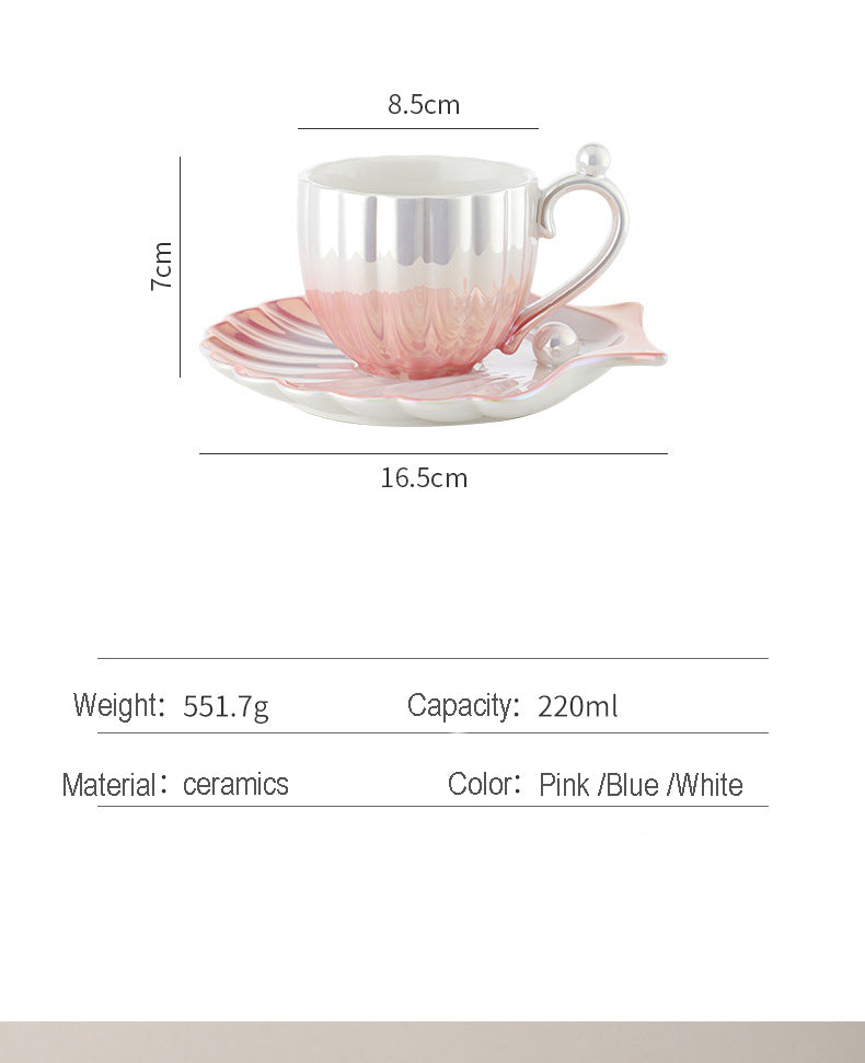 【Unique design】:  The design is full of gradient pearl coffee cup with shell texture. Let's punch in the afternoon tea every day!