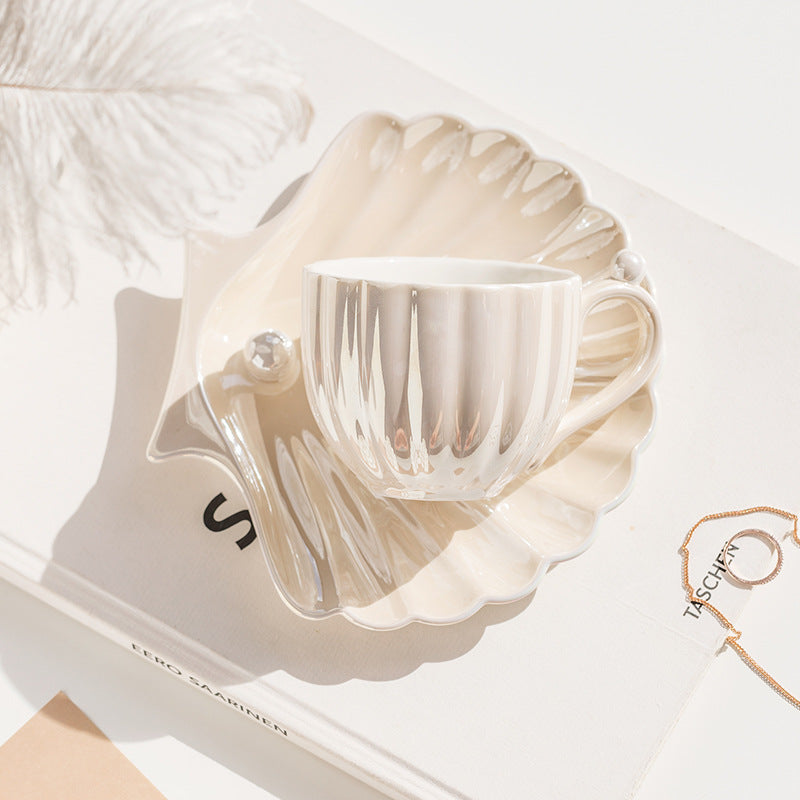 Pearl Shell Ceramic Exquisite Coffee Cup and Saucer Set for Afternoon Tea Cup 240ML