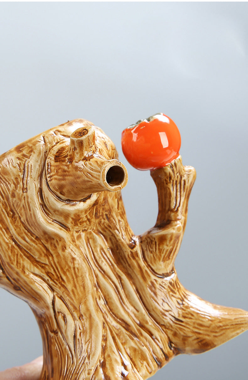 - 【Realistic Modeling】The teapot base is designed in the shape of a tree trunk, the indentation on the top of the base coincides with the teapot and can be placed smoothly on the base to make tea. After high temperature firing, smooth glaze.